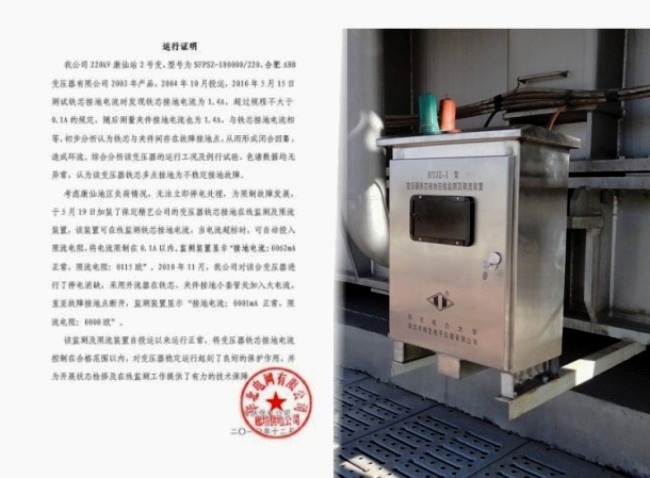 內(nèi)蒙古呼和浩特市黑河220KV變電站安裝運(yùn)行變壓器鐵芯接地在線監(jiān)測(cè)及限流裝置